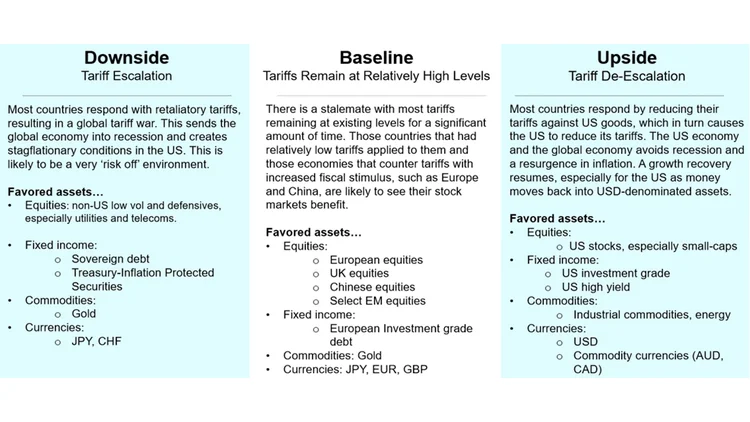 As the tariff situation is evolving, we lay out a couple of scenarios, and our asset preferences based on the different outcomes. We anticipate significant volatility and downward pressure on risk assets in the near term.